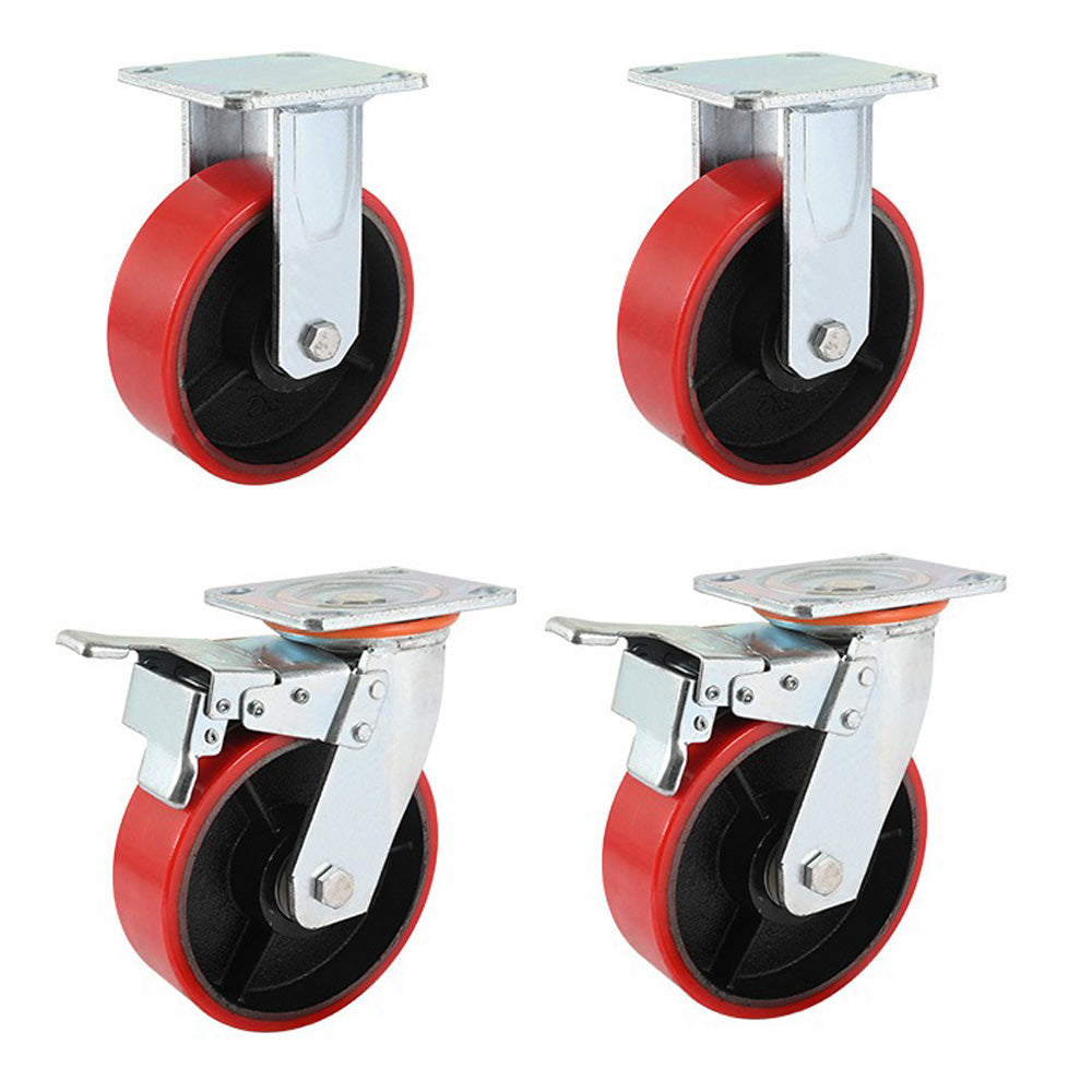 This is a set of 4 extra heavy-duty swivel castors with PU tyres on a cast iron core