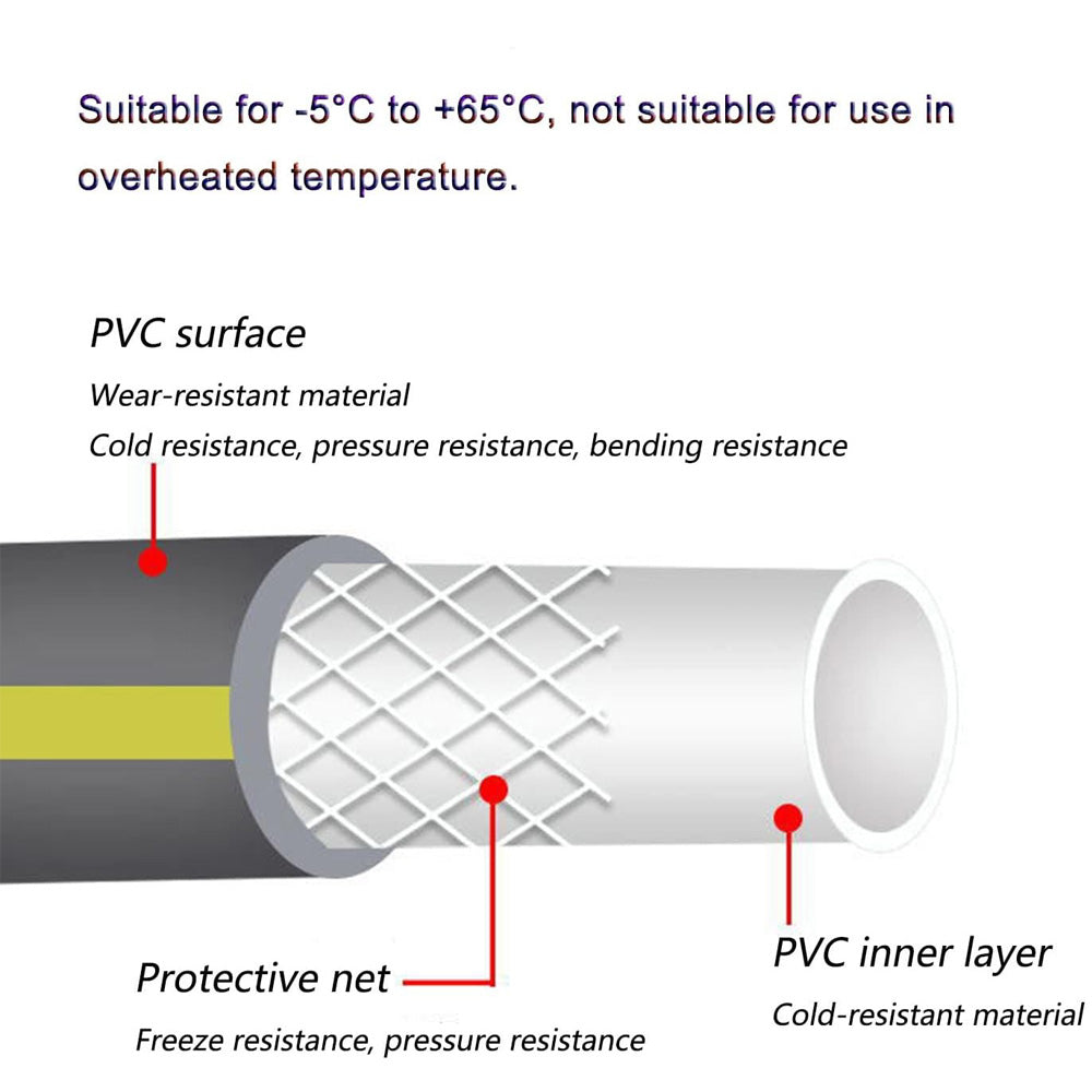 A flexible PVC inner core, reinforced with braided webbing, which is coated with a flexible PVC outer shell offering a medium to high yield hose grade with high kink resistance.